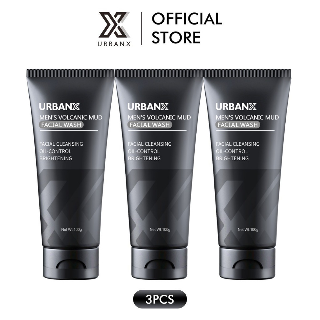 [Dapat 3] URBANX Men's Volcanic Mud Face Wash 100g Brightening Oil-control Niacinamide WHITENING Unclogs Pores