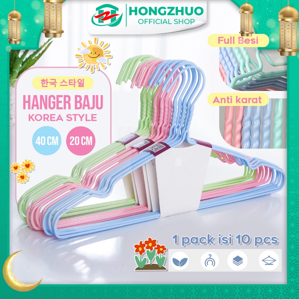 HONGZHUO X RED HOUSE GANTUNGAN BAJU STAINLEES STEEL 10PCS HANGER BAJU DEWASA HANGER BAJU ANTI KARAT HANGER BAJU WARNA PASTEL GANTUNGAN SERBAGUNA
