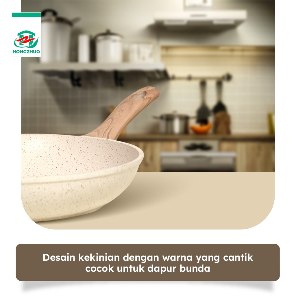 TIFALE BY HONGZHUO 3IN1 ORGANIC CREAMLY COOKWARE MARBLE COATED ANTI LENGKET HANDLE BAKELITE SILICONE ANTI LELEH AVOCADO PAN