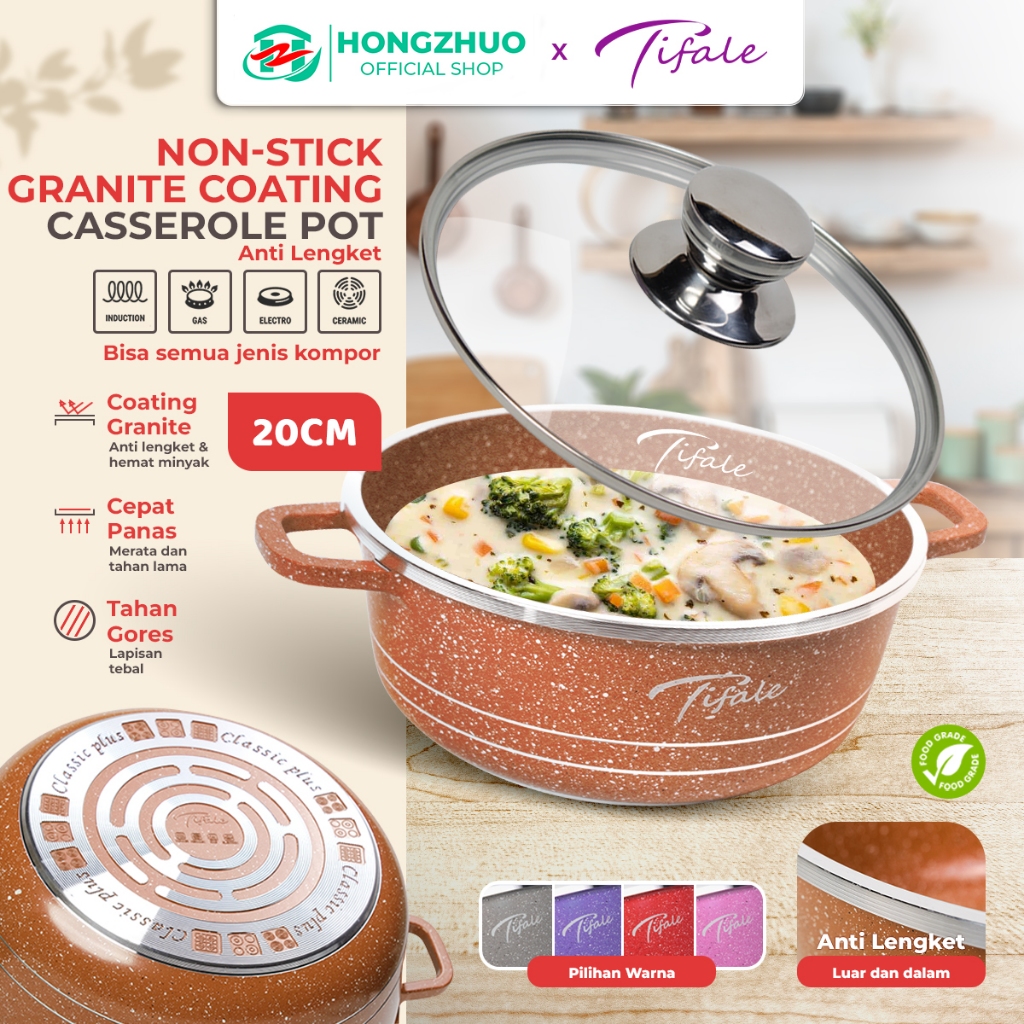 TIFALE BY HONGZHUO GRANITE ALUMINIUM NON STICK CASSEROLE POT BOWL DEEP FRY PAN COOKWARE TOOL 4 UKURAN DESSINI