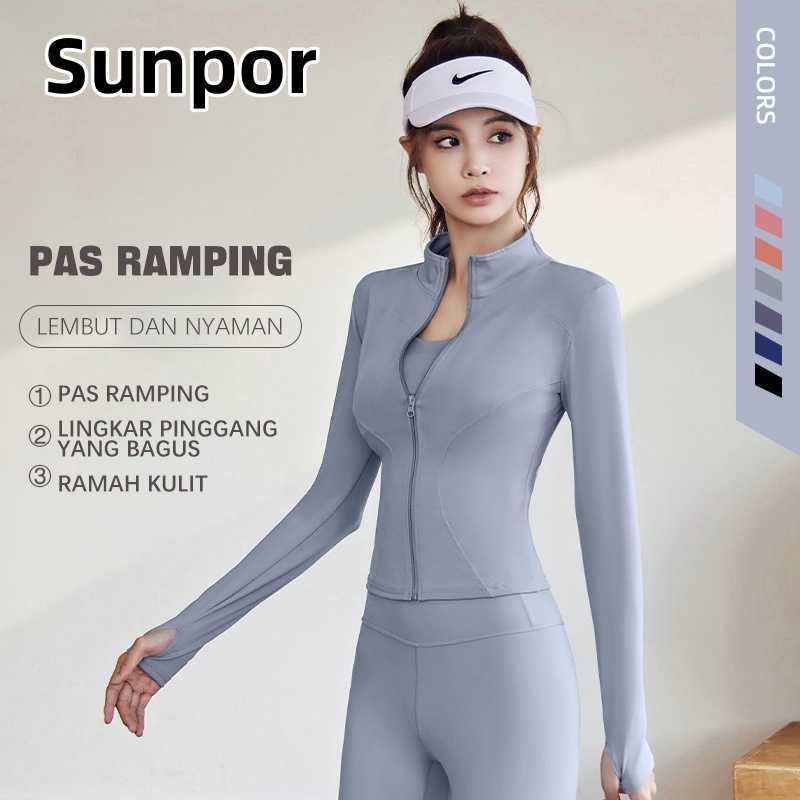 【Sunpor】Jaket wanita lengan panjang sport untuk olahraga running gym yoga
