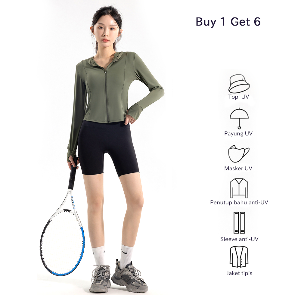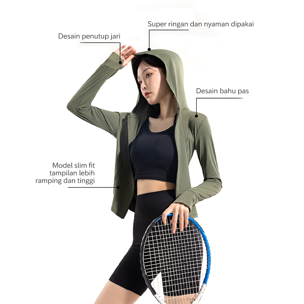 ZUNO Sport Jaket Olahrga Wanita Anti UV / Jaket Hoodie Olahraga Outdoor Wanita Yoga dan Gym UPF 50+