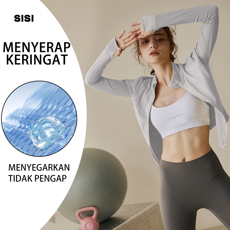 jaket olahraga wanita baju olahraga wanita jaket lengan panjang Untuk Olahraga Yoga WanitaGym Sport Outdoor Sejuk Berna