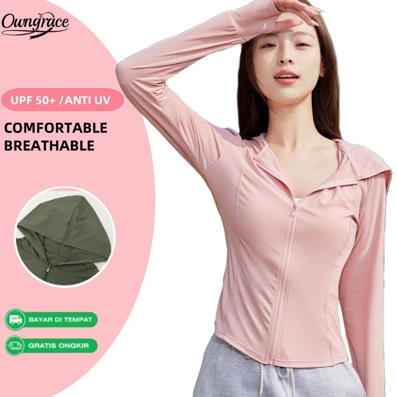 Owngrace Baju Lari Wanita Baju Olahraga Wanita Baju Gym Wanita Jaket Olahraga Wanita Jaket Anti Uv Upf50+