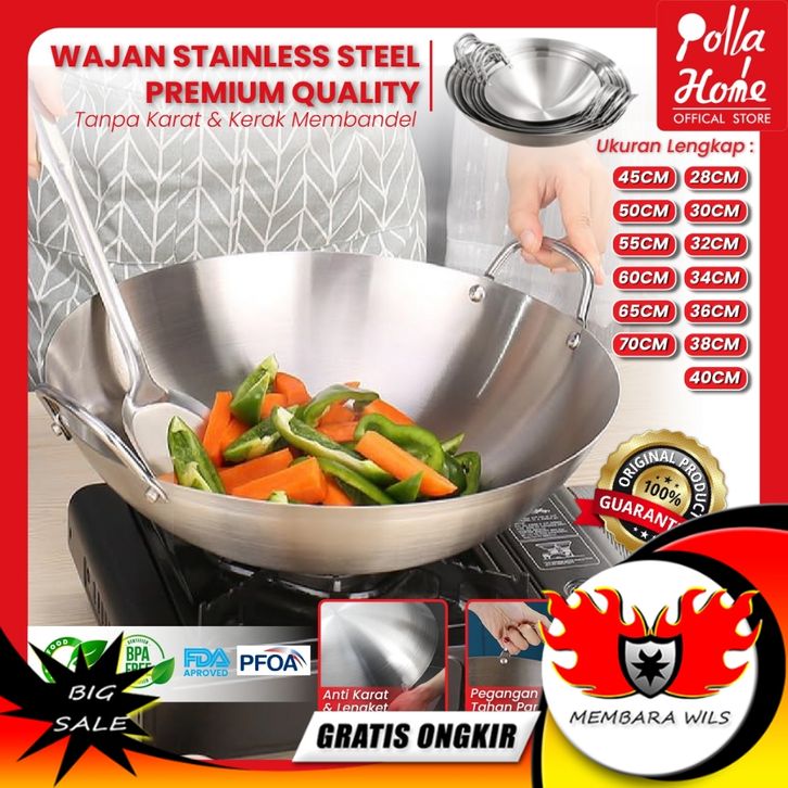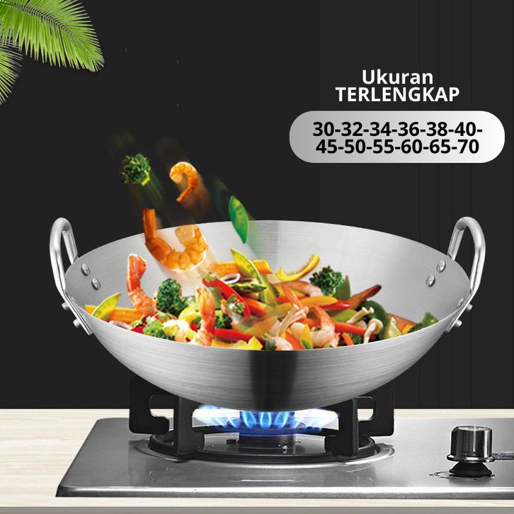 Ollahom Wajan Kuali Penggorengan Stainless Steel SUS 304 Tahan Karat Anti Lengket Cepat Panas Dengan Pegangan Tahan Pana