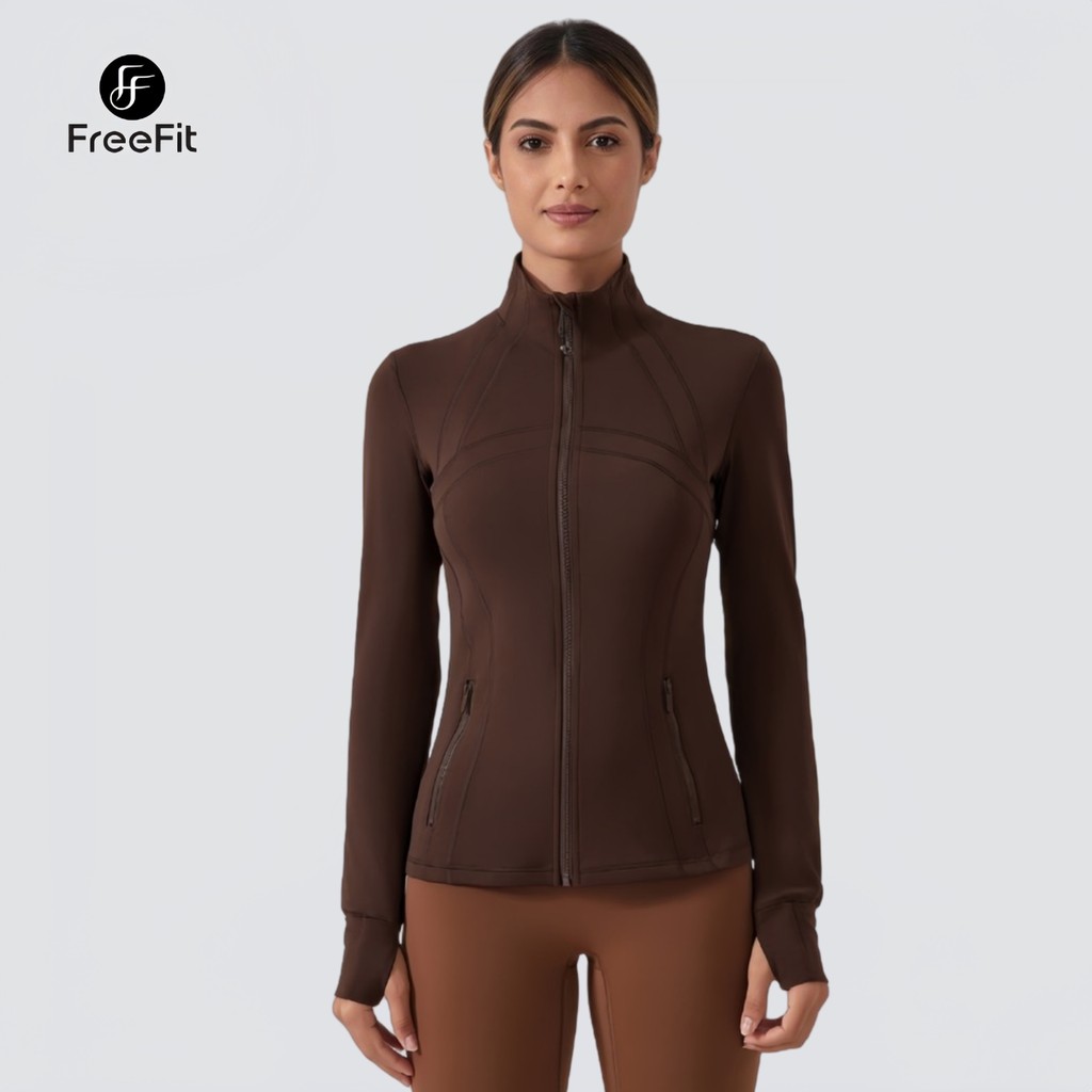 FreeFit Jaket Olahraga Wanita Slim Fit Outdoor Anti UV Tennis Pedal Pilaties Gym Gunung Lari Jogging