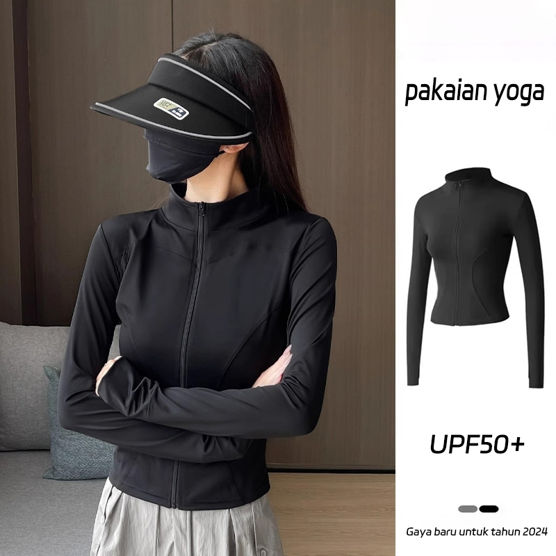 【Stok ready】Jacket Anti UV Wanita Pakaian Yoga Fit Body Wanita Atasan Olahraga Lengan Panjang Yoga GYM Fitness Pelindung