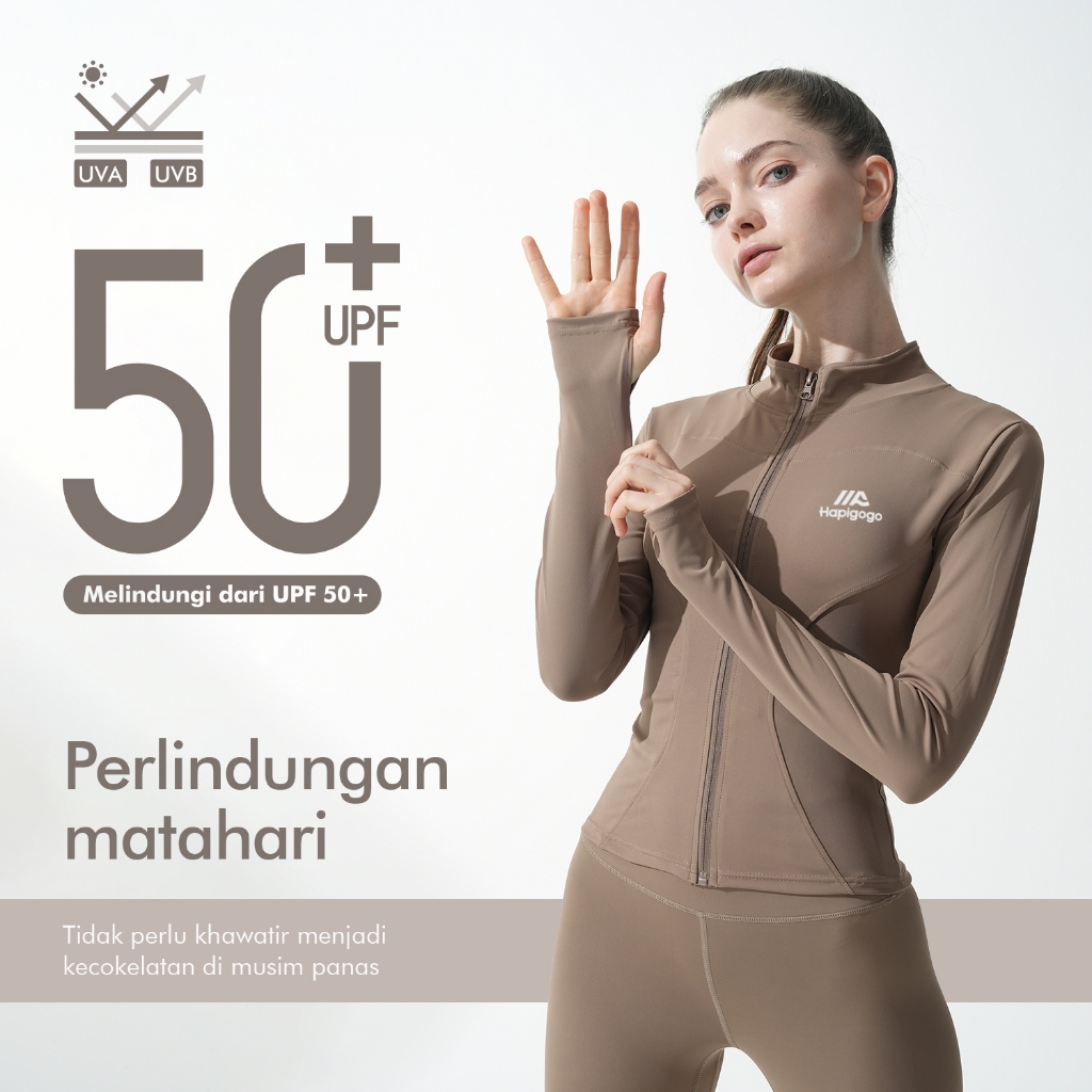 【Hapigogo】Jaket Olahraga Wanita Lengan Panjang Untuk Yoga/Fitness Sport Jaket Anti UV Sport UPF50+