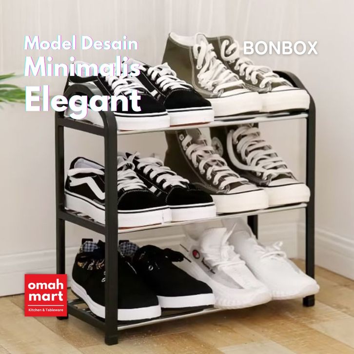 Rak Sepatu Sendal Minimalis BONBOX Rak Sepatu Sandal Kecil Mini Minimalis Shoe Rack 3 Susun Besi Plastik