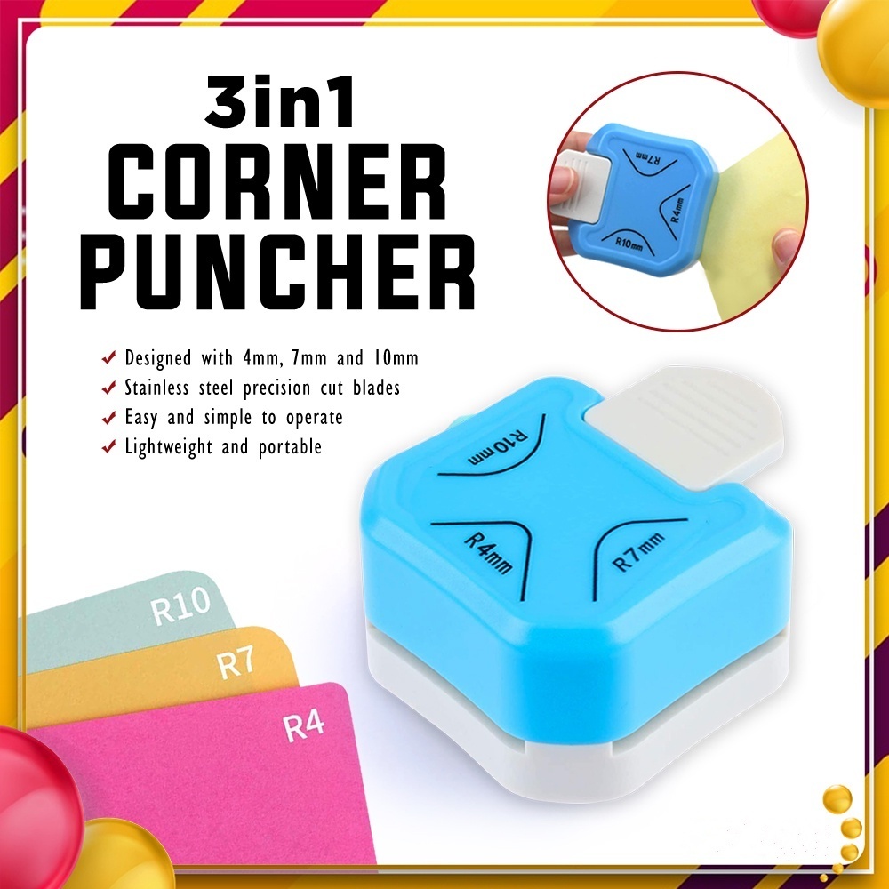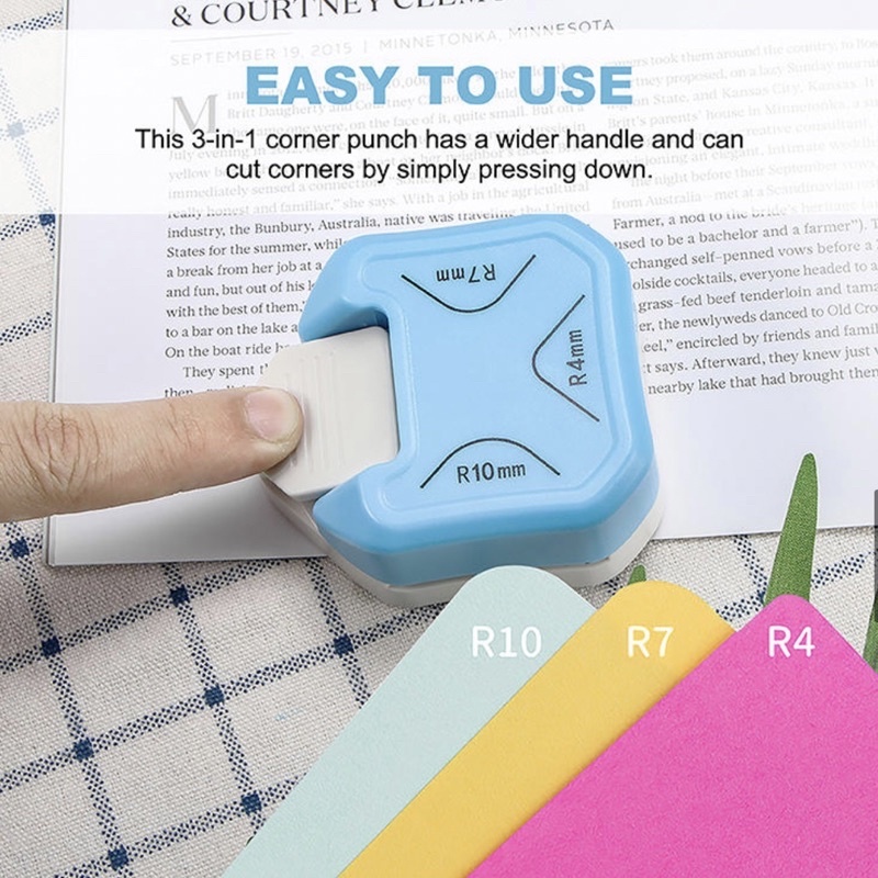 Pemotong Fillet Sudut 3 In 1 Pemotong Kertas Pelubang R4mm R7mm R10mm Round Corner Cutter untuk Kartu Foto Alat Scrapboo