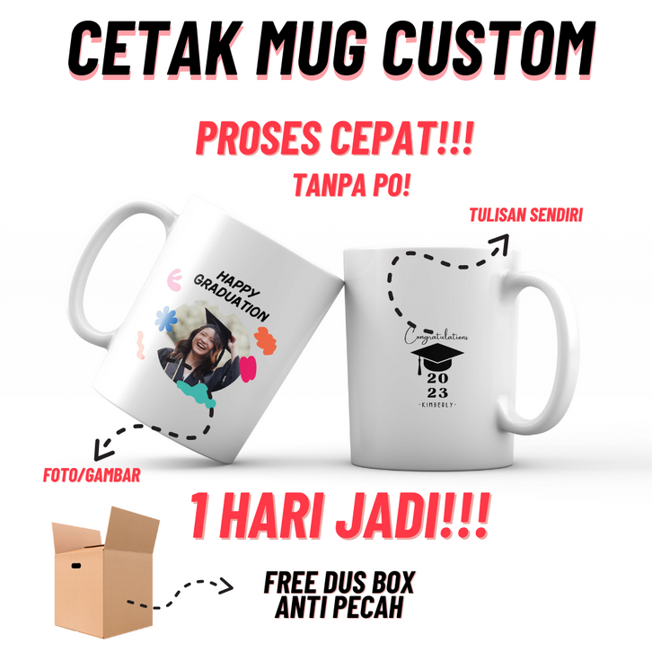 MUG CUSTOM CETAK DESIGN FOTO DAN TULISAN / KADO HADIAH SOUVENIR HAMPERS GELAS