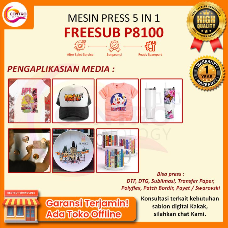 Mesin Press COMBO All In One (5in1/8in1) | (Cetak Mug, Kaos, Topi, & Piring) FreeSUB P8100 - FreeSUB F910