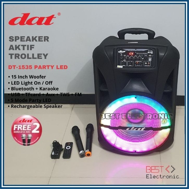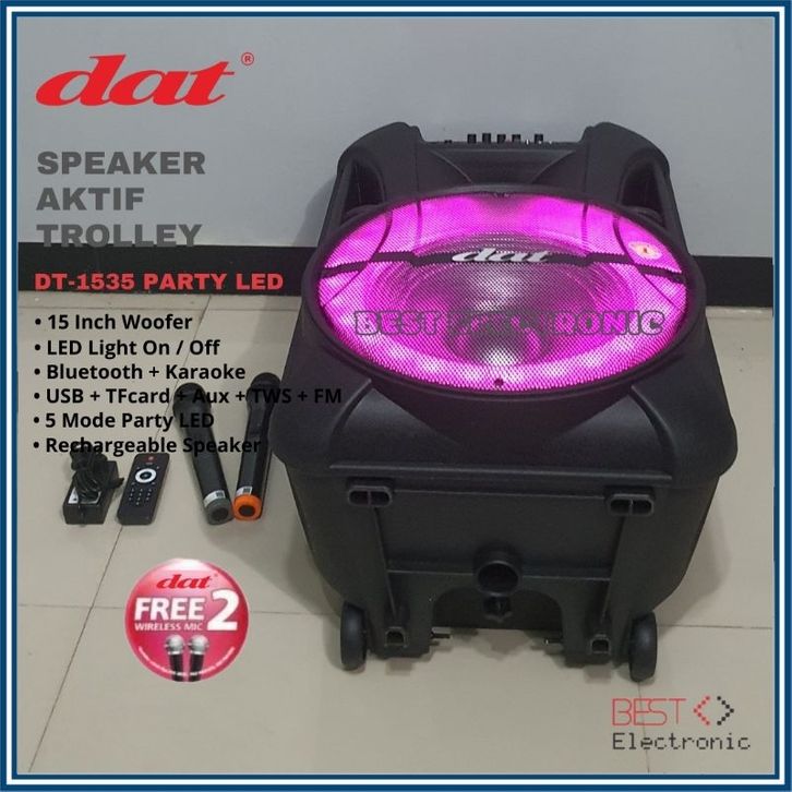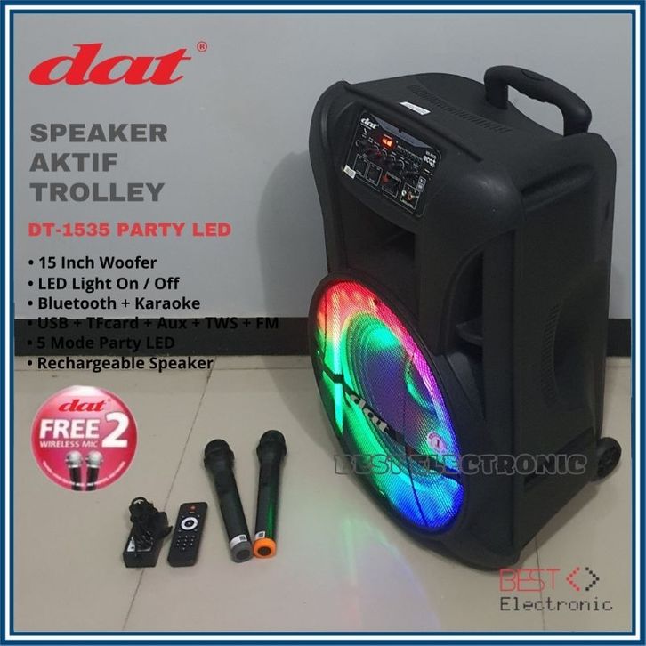 SPEAKER AKTIF TROLLEY 15 INCH DAT DT 1535 DT1535 DT-1535 PARTY LED BLUETOOTH SPEAKER PORTABLE