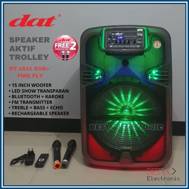 SPEAKER AKTIF TROLLEY PORTABLE 15 INCH DAT DT 1511 ECO+ FIREFLY / TRANSPARAN DT1511 DT-1511 BLUETOOTH