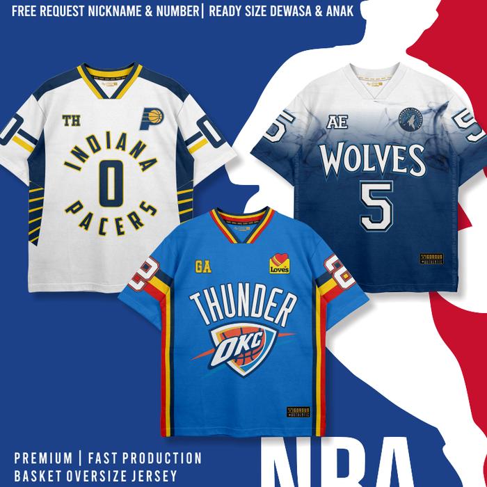 Jersey Oversize Basket Streetwear Boxy Oklahoma / Pacers / Timberwolves - Pacers Dewasa S