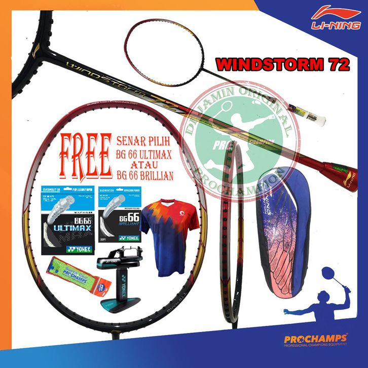 (Paket) Lining Windstorm 72 Shine Raket Badminton Original