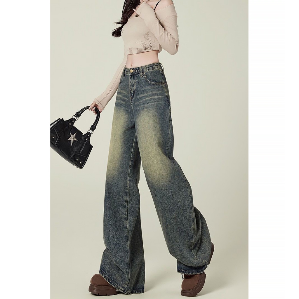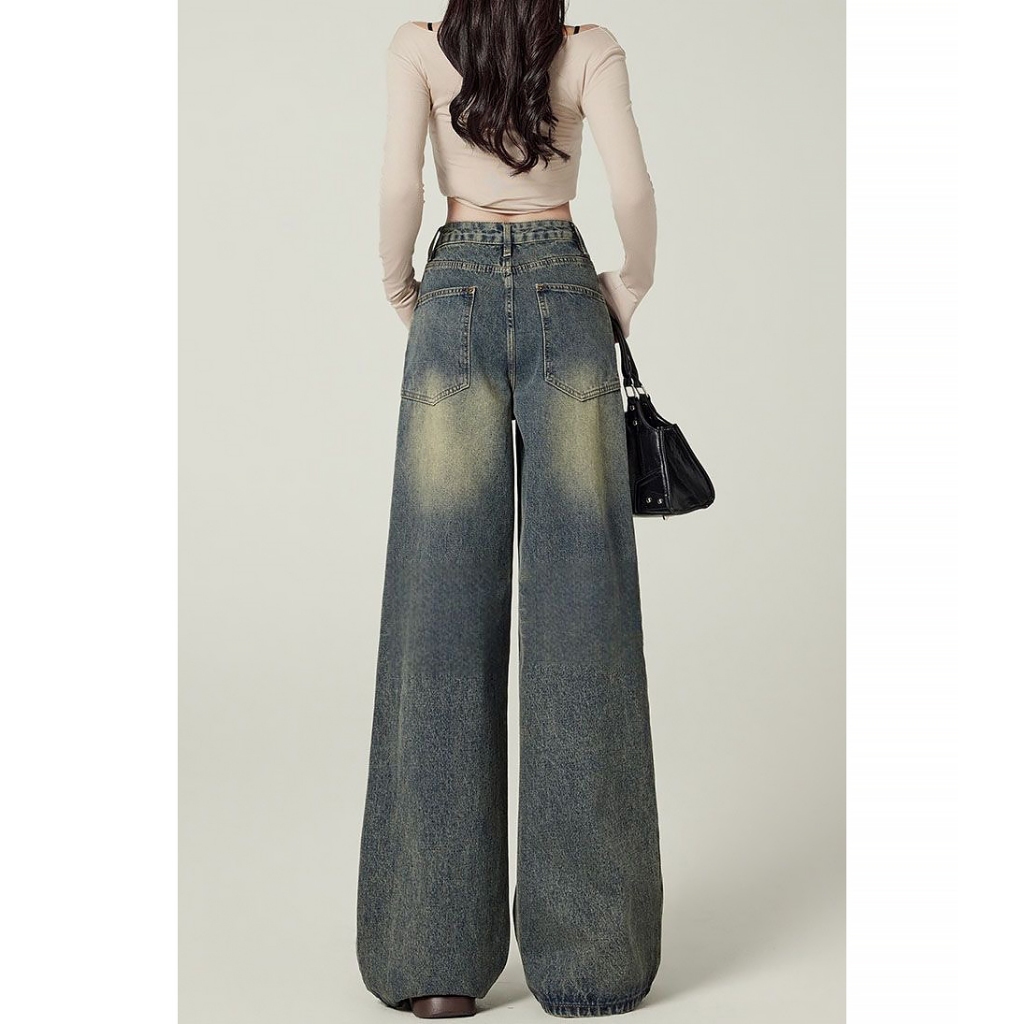 Keygirl Retro Kuot Highwaist Celana Panjang Wanita baggy Wide Leg jeans premium
