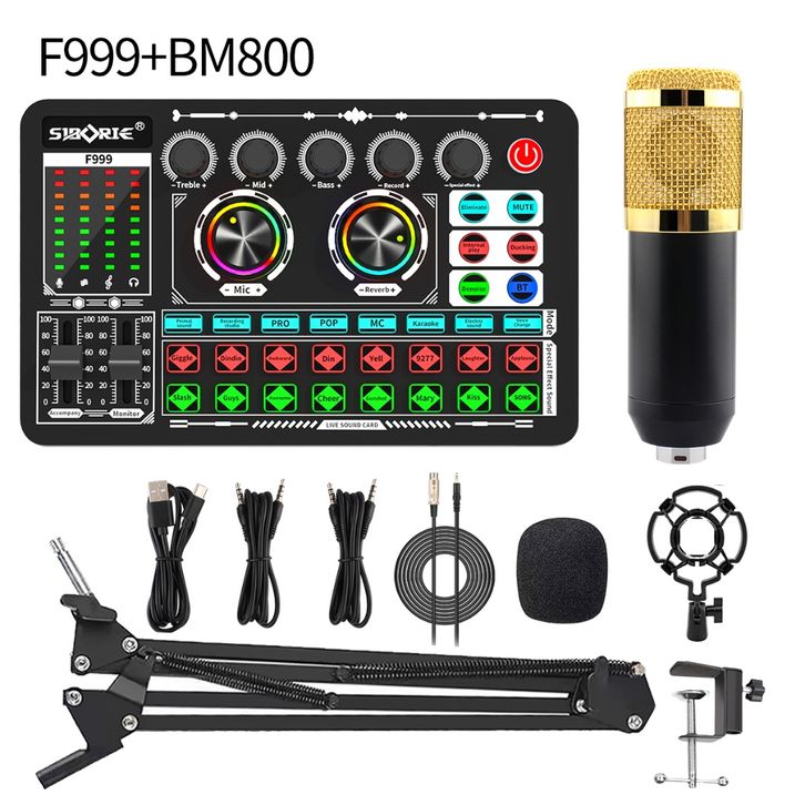 Paket Soundcard Set Siborie BM800+F999 Sound card Mic Cantilever Set Mixer Audio For Live Streaming & Karaoke