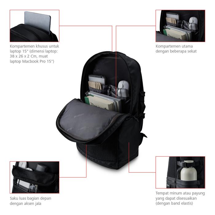 Bodypack Deixier Laptop 15 Inch Bag Tas Ransel Kerja Kuliah Sekolah Anti Air Backpack - Hitam