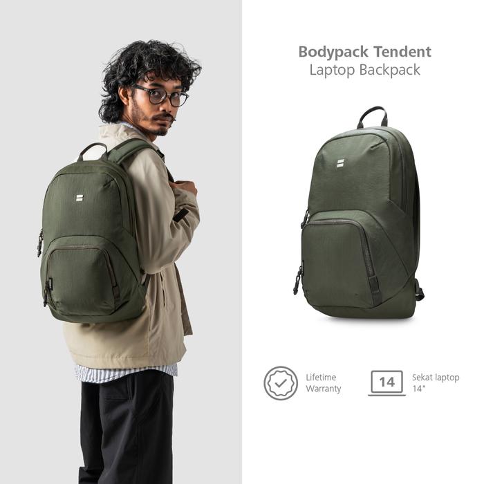Bodypack Tendent Laptop 14 Inch Bag Tas Ransel Kerja Kuliah Sekolah Ringan dan Kuat - Olive