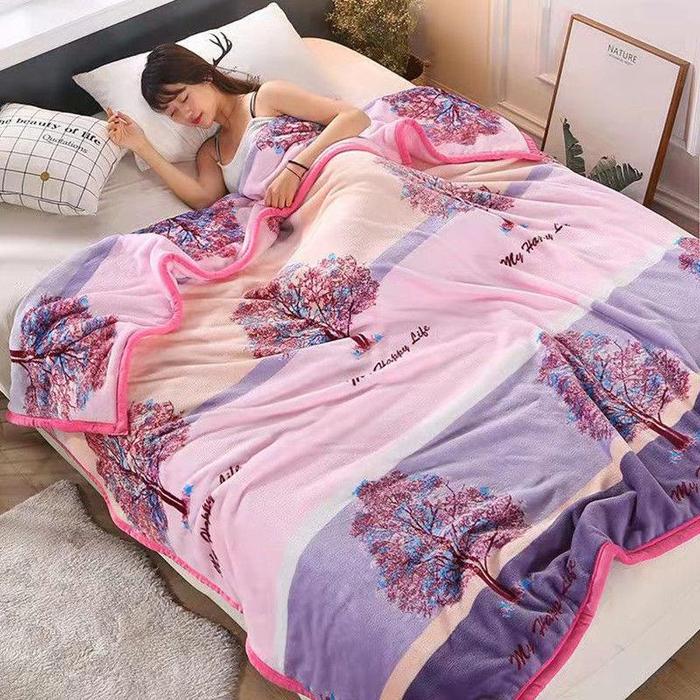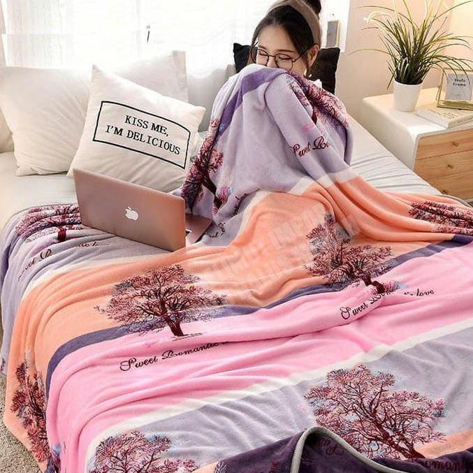 Terlaris Selimut Bulu Halus Ukuran 180x200 Motif Pohon ungu Keren Super Lembut Berkualitas Kado Kain - POHON UNGU Keren