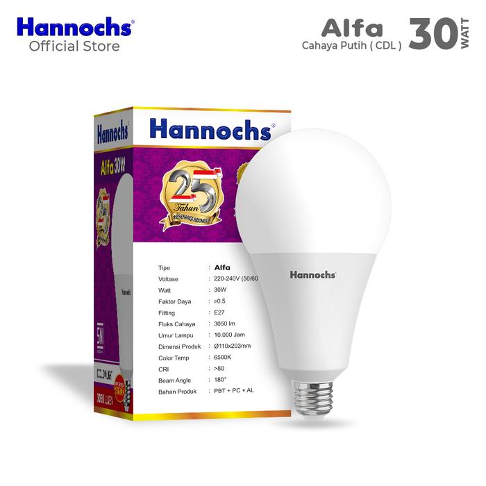 Terlaris Hannochs - Lampu LED Alfa - 30 watt - cahaya Putih - Putih Elegan