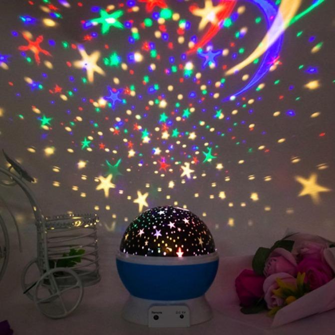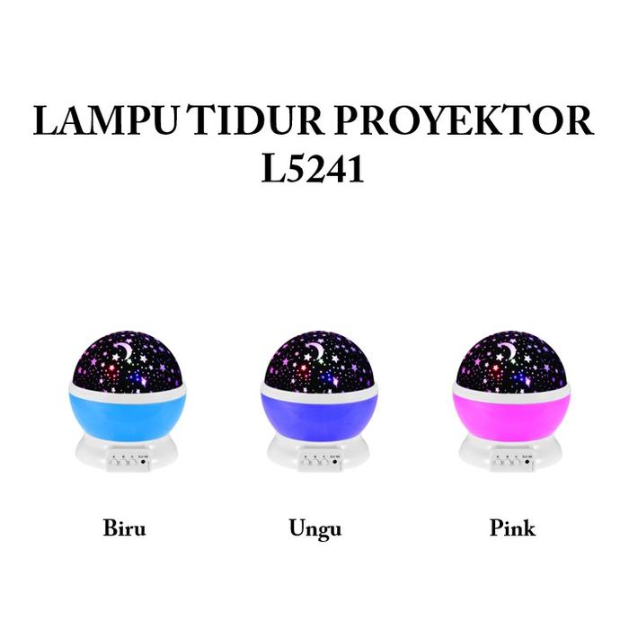 Terlaris BISA L5241 Lampu Tidur Dengan Model Proyektor Desain Bulan dan Bintang Untuk Kamar Tidur Baterai - Biru Keren