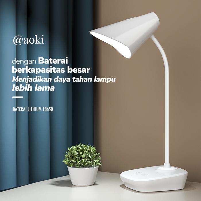 Murah AOKI Lampu belajar torch sentuh dimmer fleksibel Baca Meja Kerja Duduk Baterai Usb - Putih Elegan