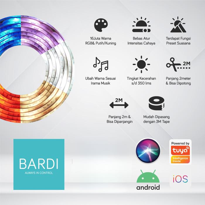 Terlaris BARDI Smart LED Strip 2M RGBWW Wi-Fi Automation Wireless - LED Strip Keren