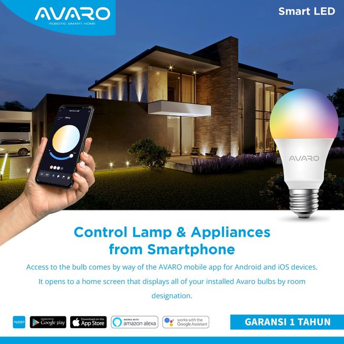 Promo AVARO Smart LED 9W 10W 12W Lampu Bluetooth + Wifi Smart Bulb RGB+WW [LIVE] - WIFI 12W Keren