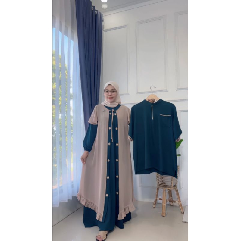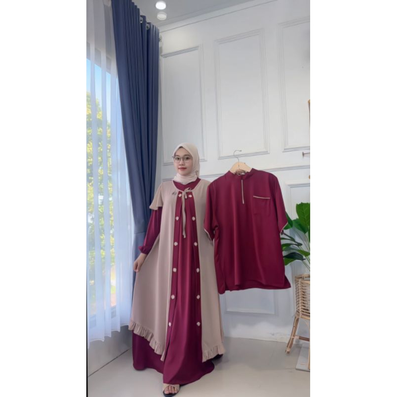 (Free Bros) Maura Gamis dan Set Couple Hari Raya Bahan Tiffany Twill Mix Ceruty Baby Doll Terbaru Assyifa Collection