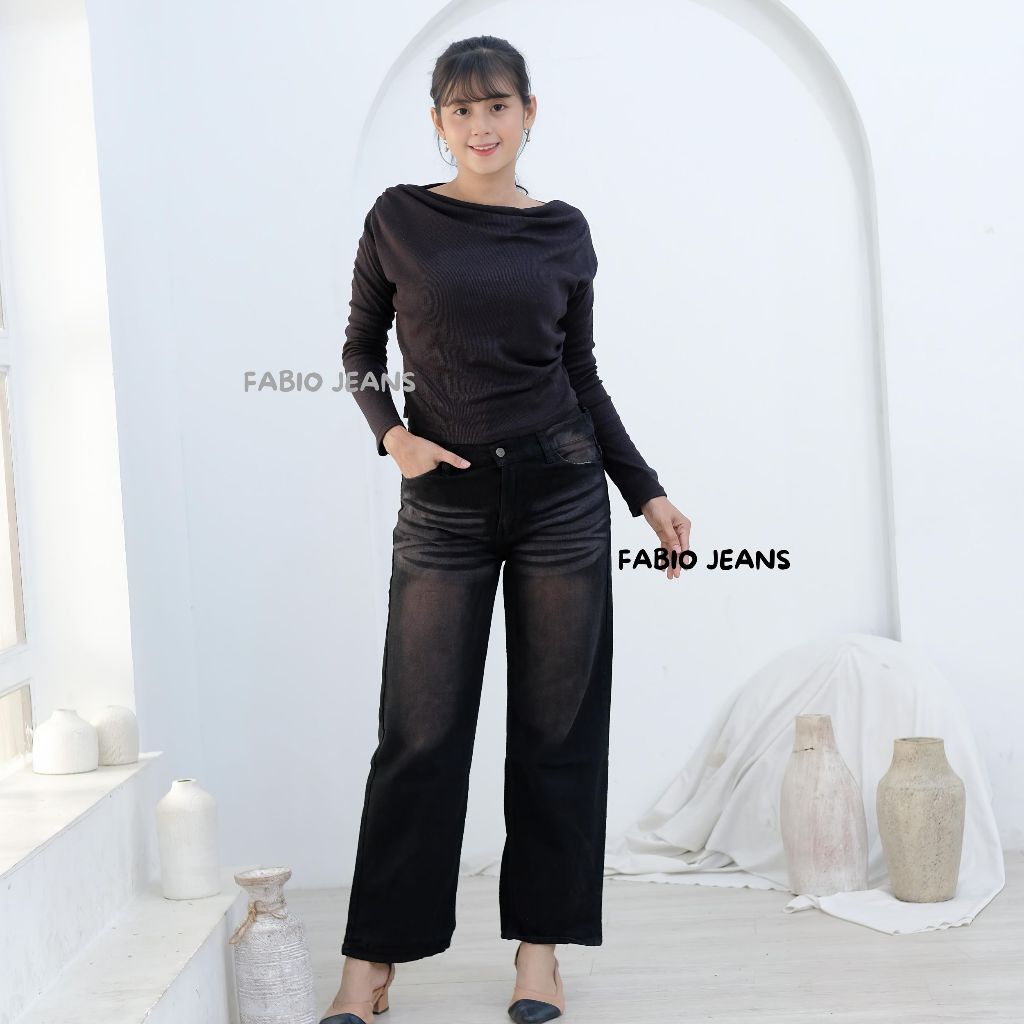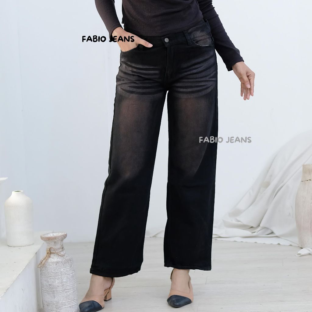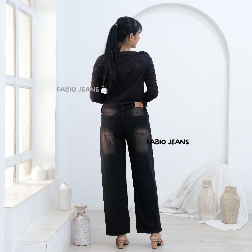 FABIO Celana Gombrong Highwaist Baggy Loose Jeans Wanita Korean Style 27-38