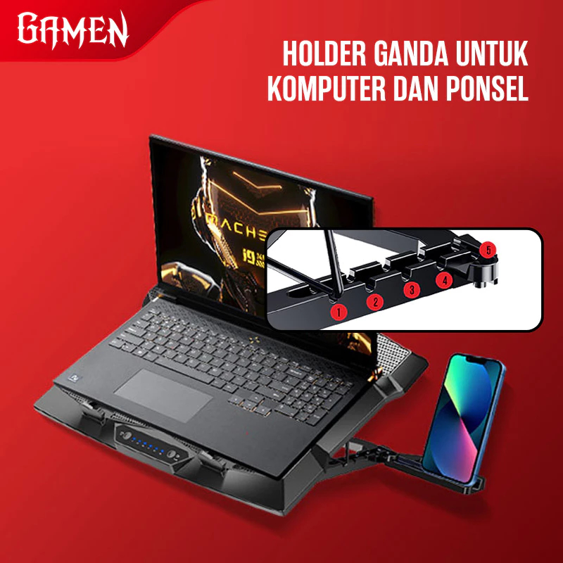 COOLING PAD LAPTOP GAMING GAMEN GCP100 STAND KIPAS 8 INTI/CORE SILENT MODE ORIGINAL
