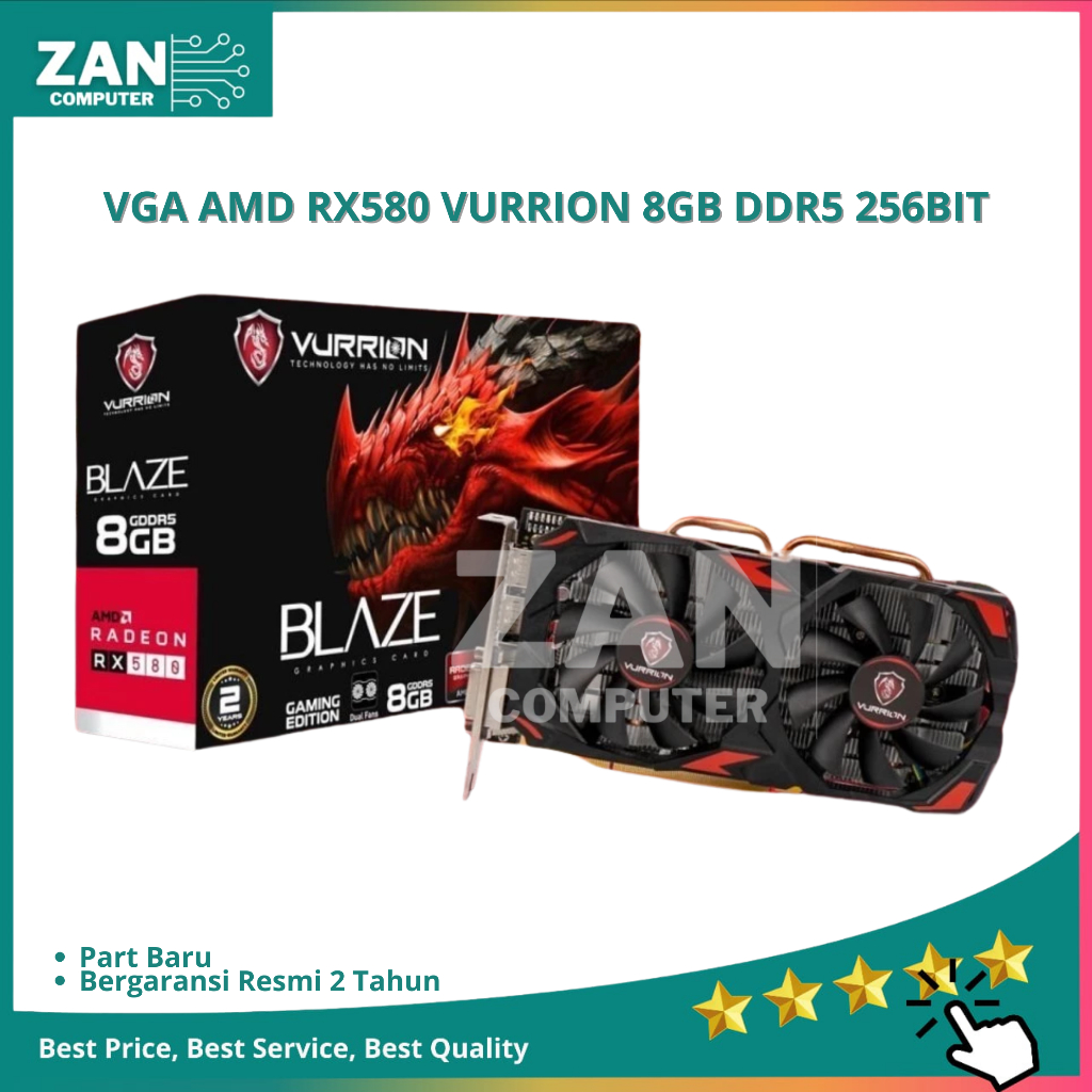 VGA RX 580 8GB Vurrion Blaze Radeon Graphic AMD DDR5 256BIT Garansi 2 Tahun Resmi- For Pc Gaming