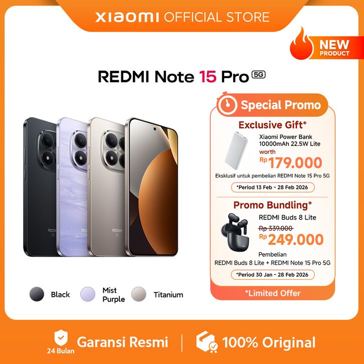 [Mall] Xiaomi Redmi Note 15 Pro 5G (8/256GB) (12/512GB) Layar AMOLED CrystalRes 6.83 Inch | NFC - Garansi Resmi Official