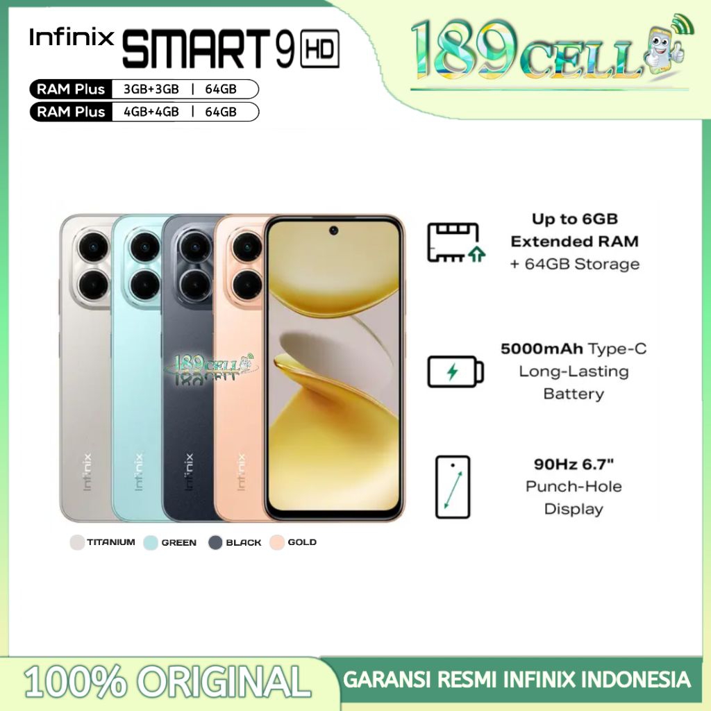 INFINIX SMART 9 [HD] RAM 4/64GB 3/64GB - Smart9 HD GARANSI RESMI INFINIX INDONESIA
