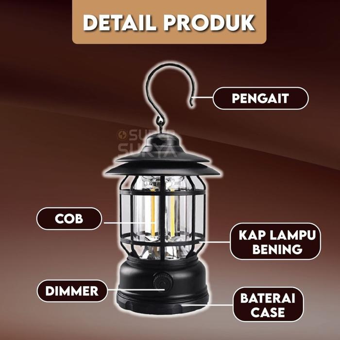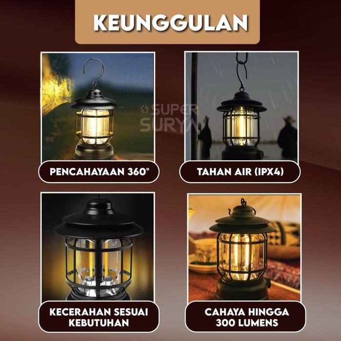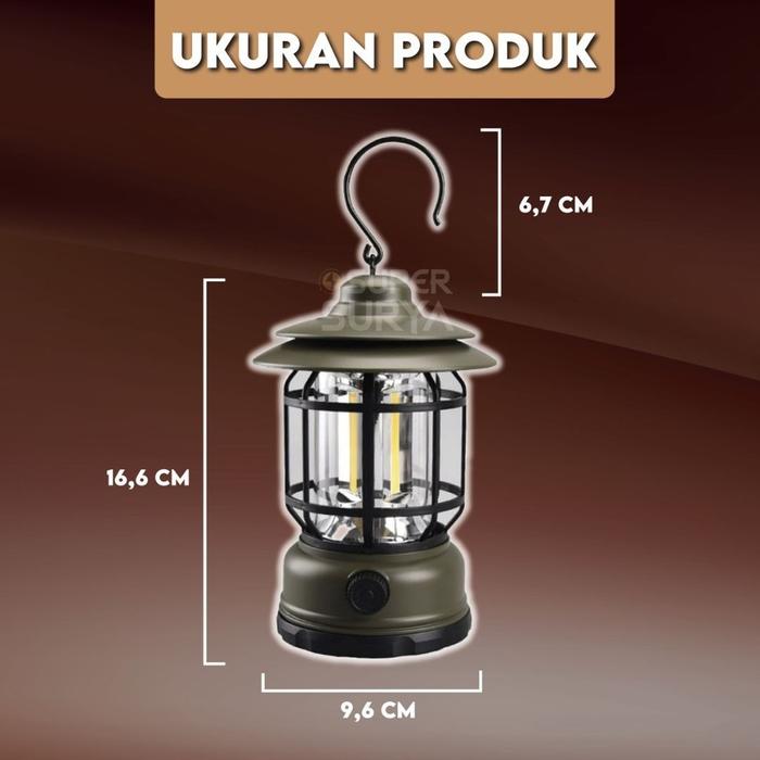 Lampu Lentera Retro Camping 3 COB 300 Lumens Kemah LED Emergency Lamp Indonesia White