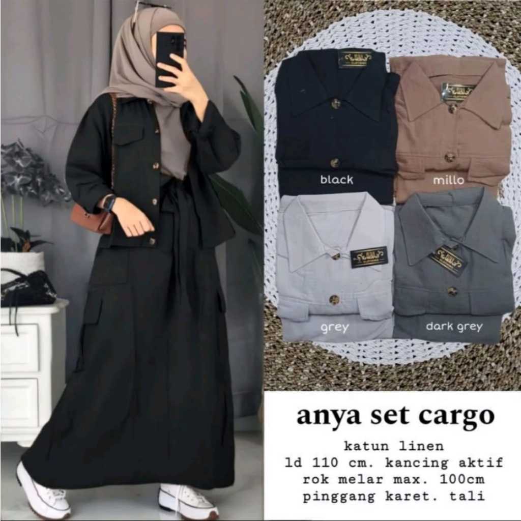 Set Cargo Skirt Linen Rami Setelan Wanita Remaja Muslim Modern Kekinian Premium