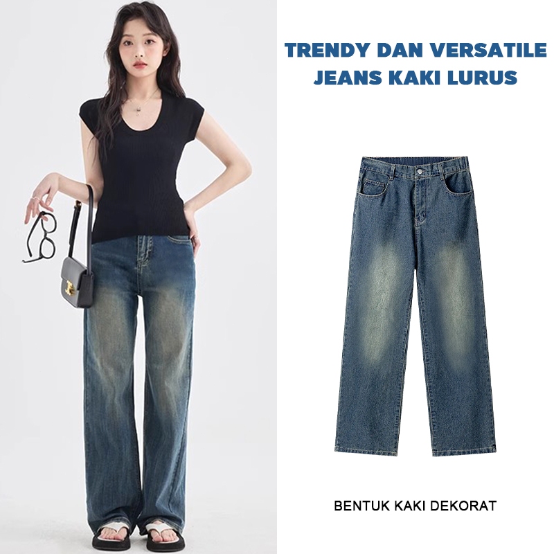 VV - Clothg - Baru Loose Jeans Celana jeans wanita-Celana jins warna retro celana jeans biru