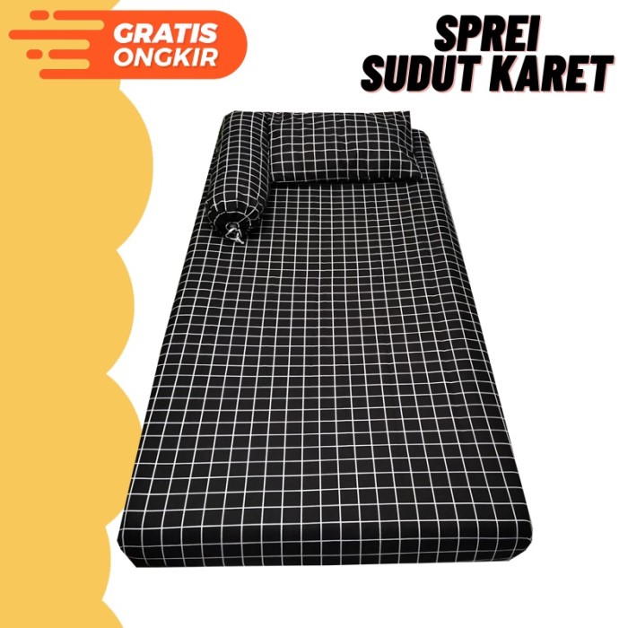 SPREI SINGLE BED 90X200 KOTAK HITAM TERLARIS TERMURAH - KOTAK HITAM, 90X200 SPREI AJ
