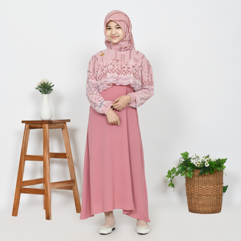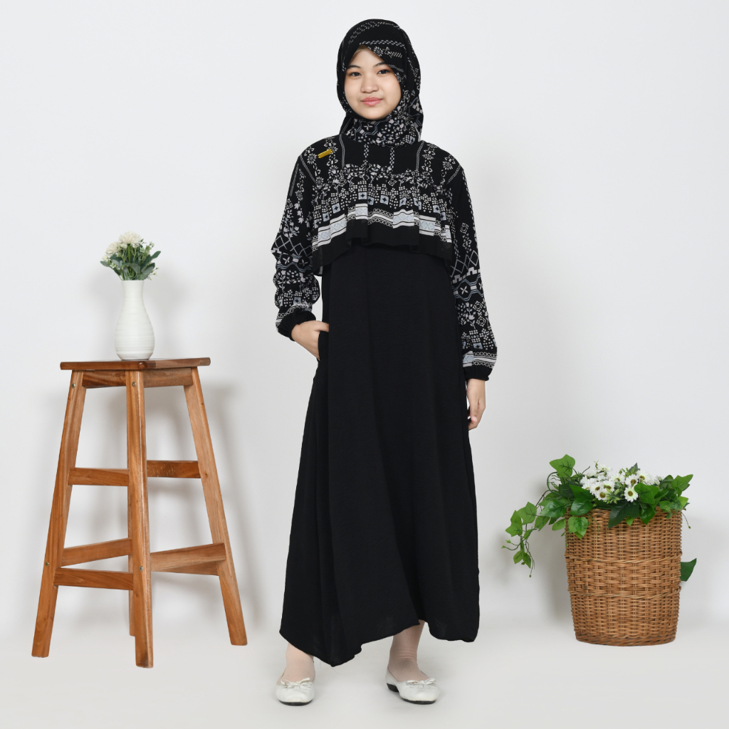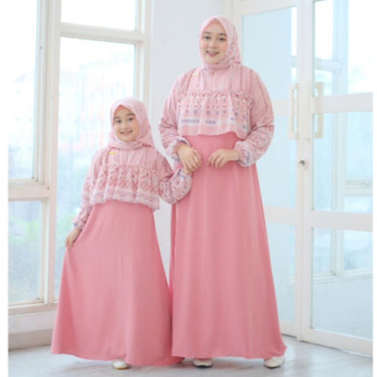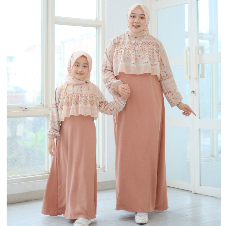 Gamis Couple Ibu Anak Cringkle Mix Ceruty Free Hijab 3-14 Tahun