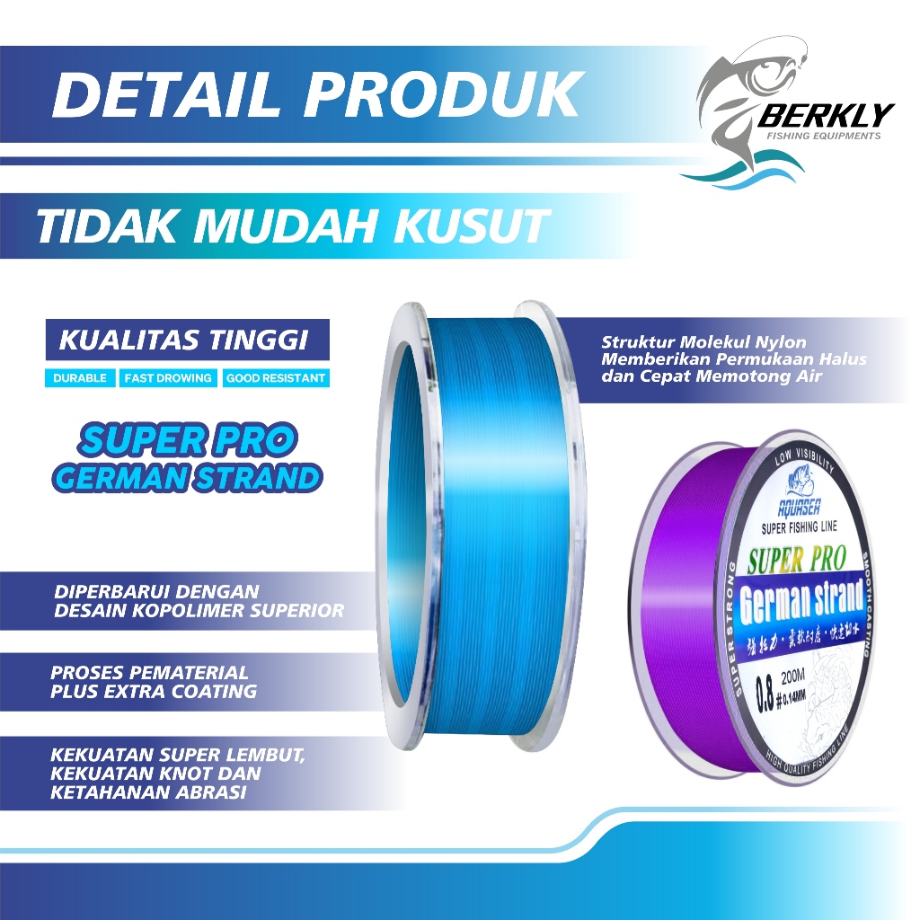 PROMO BERKLY - Tali Pancing Germany Fishing Line 200m Senar Pancing Bahan Nilon Tahan Lama Panjang
