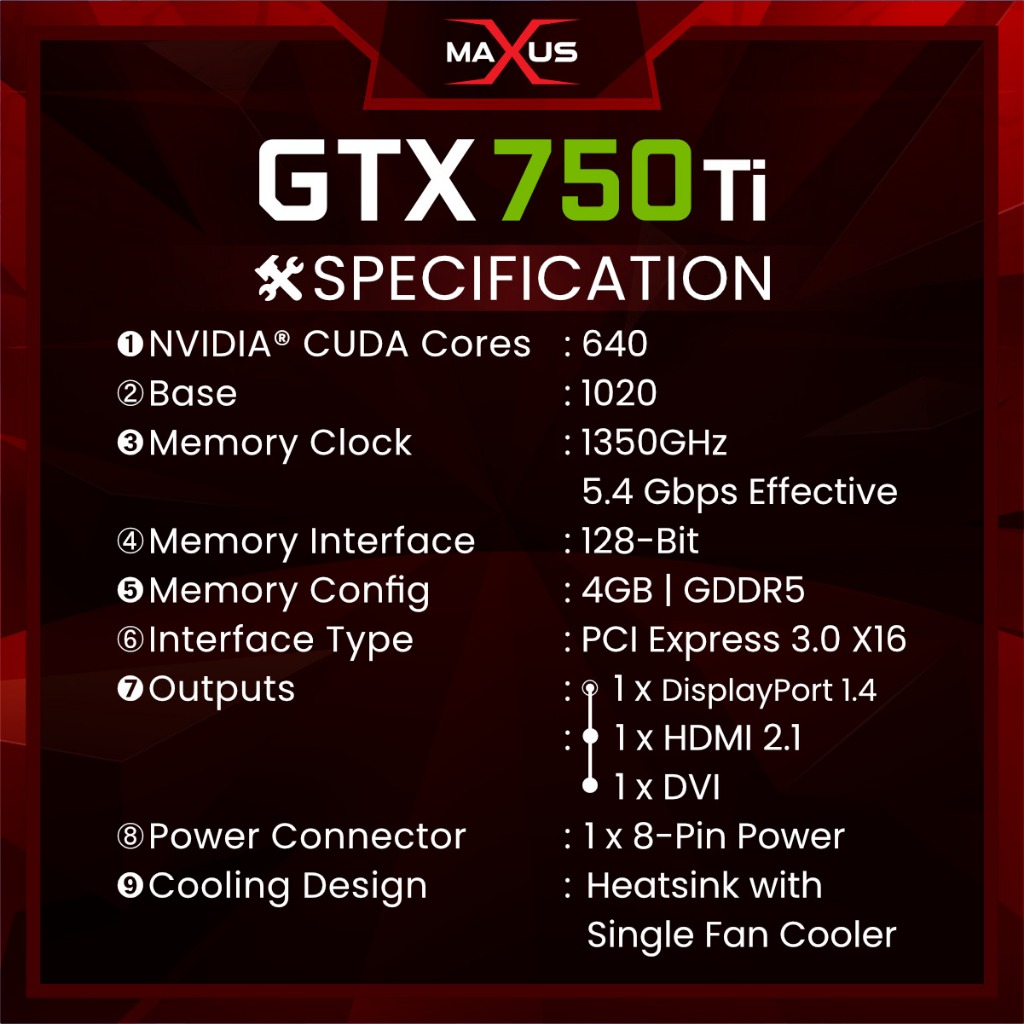 VGA MAXUS GTX 750 Ti 4GB GDDR5 128 BIT REAL CAPACITY RESMI