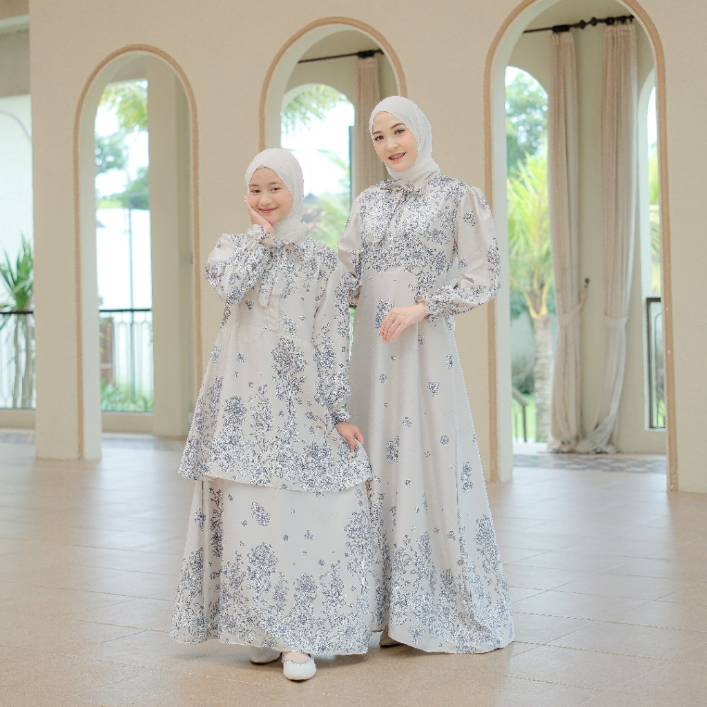Baju Couple Keluarga Zoujah Ivory White By Baby Malika | Set Gamis Koko Terbaru Lebaran 2025