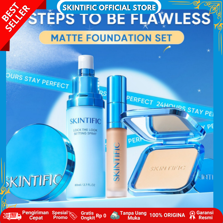 [Mall] SKINTIFIC OFFICIAL STORE 4pcs Paket Perfect Matte Makeup Set Serum Concealer + Matte Cushion + Ultra Cover Powder