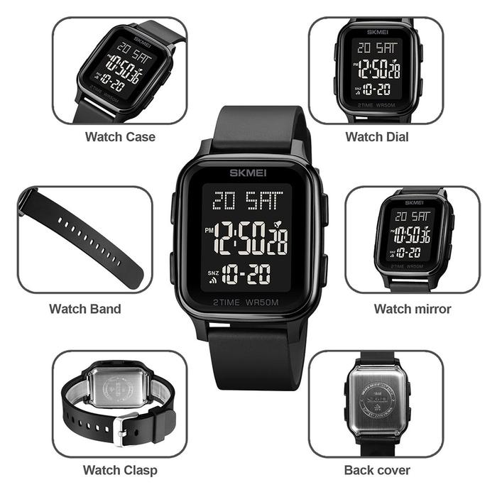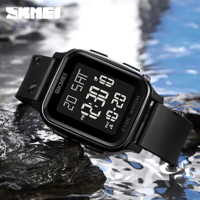 Promo SKMEI Jam Tangan Digital Pria 50M - 1858 - Black Elegan