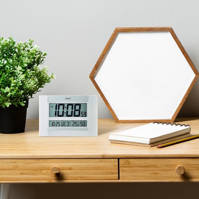 Terlaris Jam Dinding / Meja Seiko LCD Digital Kotak QHL088W 26 cm Original Elegan