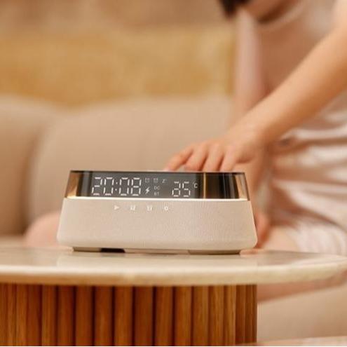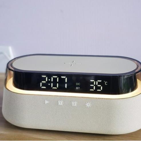 Murah VIEWTEC W39 Speaker Bluetooth Wireless Charger Lampu LED Alarm Clock - Beige Garansi 1 Bulan Keren