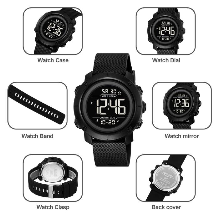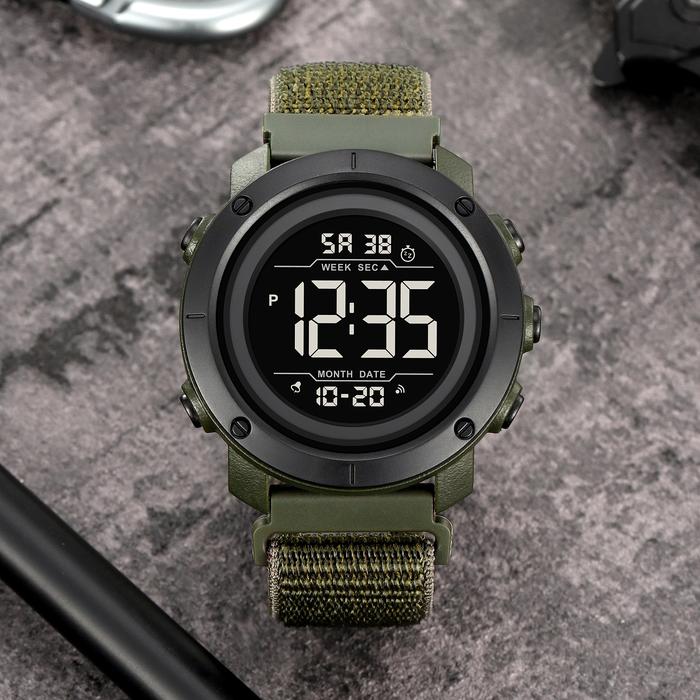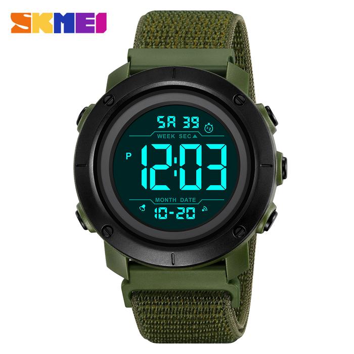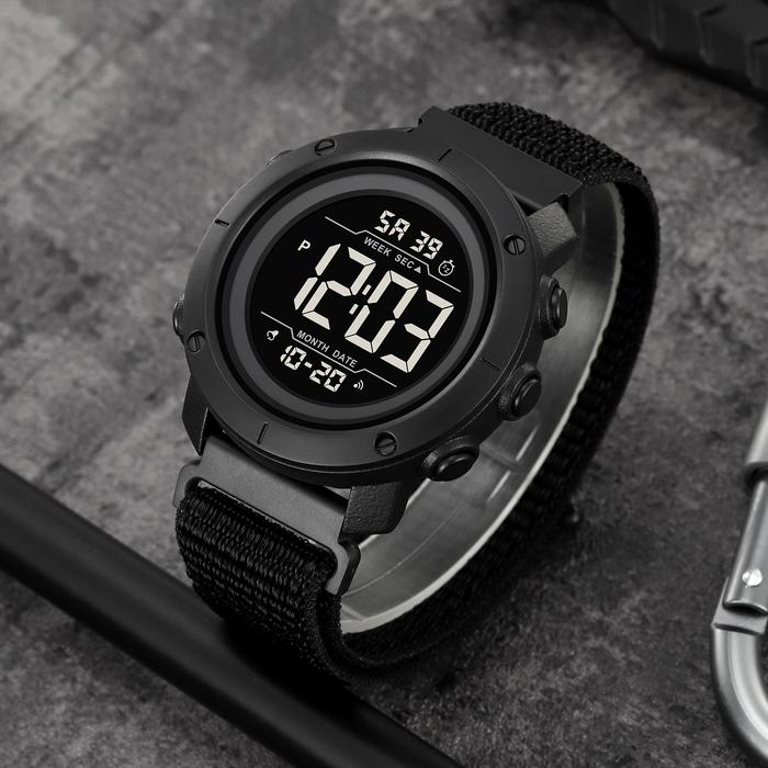 Terlaris Jam Tangan Pria Digital Sport Tahan air Tali Nilon SKMEI 2497 - Hitam Hitam Elegan