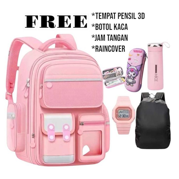 Ready Tas Ransel Foxs Paket Kombo Dapat Bonus Tempat Pensil 3D,Botol Minum,Raincover,Jam,Kipas,Dan Gantungan Boneka Tas